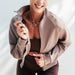 Crafted from thick, premium-quality fabric, this jacket is surprisingly warm and snuggly, even without any bulk. It’s lightweight to wear but heavy on style — the perfect go-to for transitional weather or layering during colder months. The cropped length adds a flattering finish at the waistline, making it ideal for pairing with high-waisted bottoms.